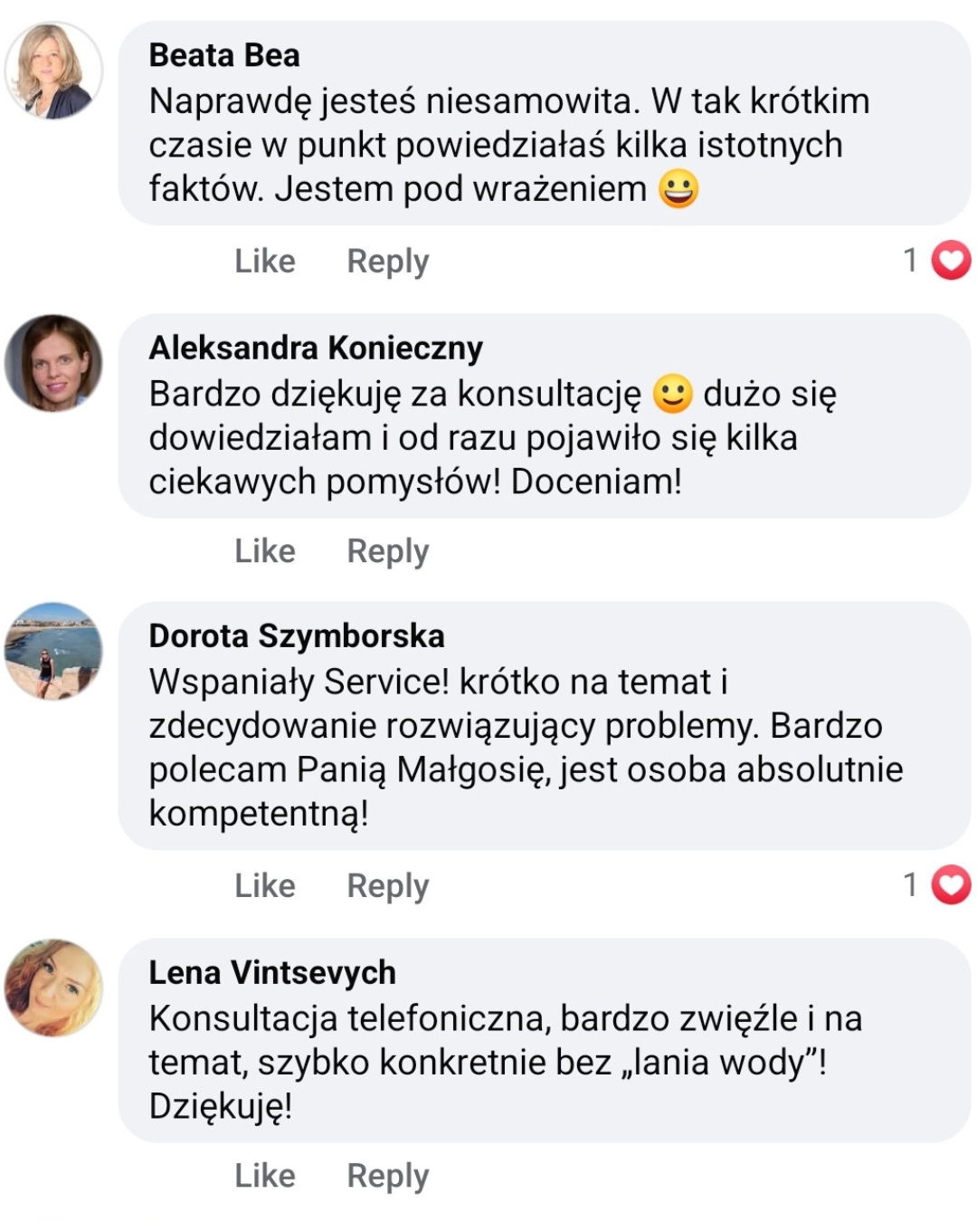 Nadal pracuję jako konsultant dla jednej z najbardziej prestiżowych agencji marketingowych w Europie. Jestem też właścicielką Agencji Headhunterskiej, zdobywcą tytułu Innowatora w Biznesie w UK. Od roku Tworzę dla was narzędzia i kursy, które pomagają wam stworzyć efektywny biznes online. Tak, tak… jestem pracoholiczką i totalnie to kocham.
